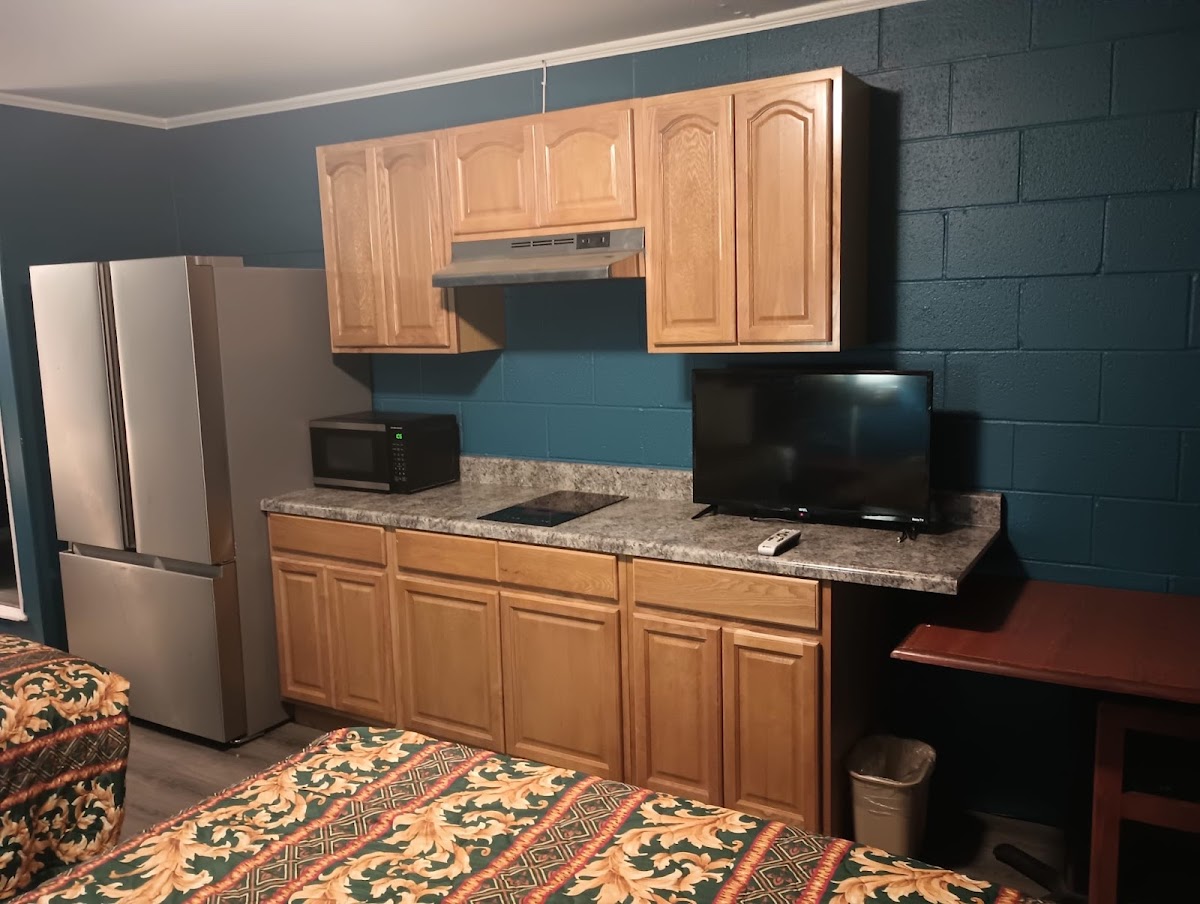 We we're one our way back to Indiana & stopped here... I was very pleasantly surprised... Very clean king bed, table & chairs, full size fridge, 2 burner stove & microwave... All for $45!!! It was very quiet & staff was very nice!!! Would DEFINITELY stay here again!!!